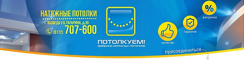 Натяжные потолки "Потолкуем!" Москва Вологда обл